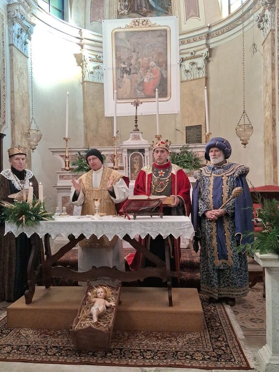 L’adorazione dei Magi è avvenuta davanti al dipinto votivo fatto restaurare dalla Parrocchia, conservato per tutto l’anno a Stresa ed esposto alla devozione popolare solo il giorno dell’Epifania. Non nell’ambito del presepe vivente che, lo scorso anno, ha vissuto la sua 101° edizione dopo gli anni di pausa imposti dal Covid.