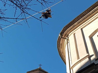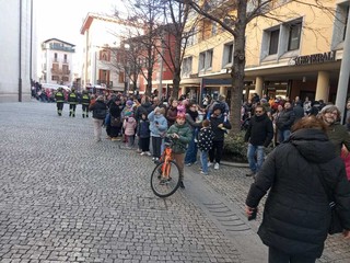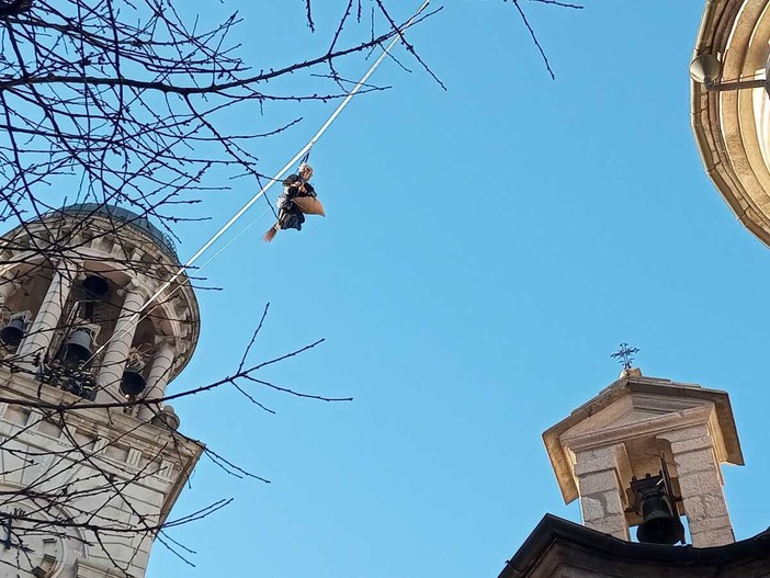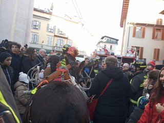Si è calata dal campanile di San Vittore di Intra, nel pomeriggio del 6 gennaio, la Befana dei vigili del fuco. Ad Attenderla una folla di bambini, accompagnati dai genitori e dai nonni. Dopo essersi calata ha riattraversato la piazza distribuendo sacchetti con dolci e caramelle, “scortata” da due asinelli della cooperativa Somariamente del Montorfano. La “regia” dell’evento prevedeva che la Befana salisse in groppa ad uno dei due asinelli per lanciare da lì i doni ai bambini ma la ressa era tale che ha dovuto riattraversare la piazza a piedi.