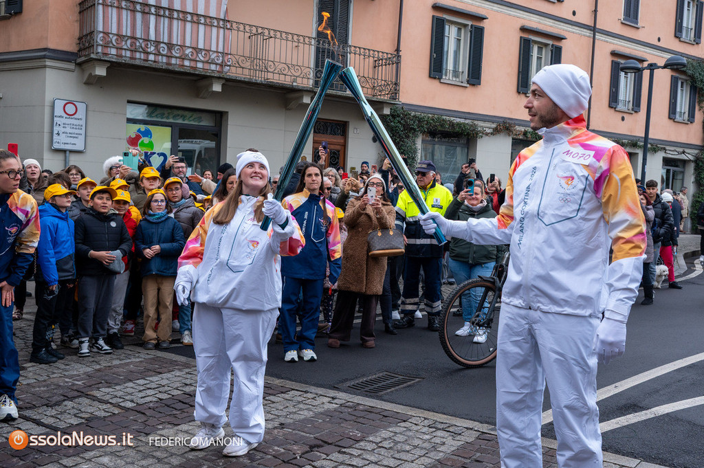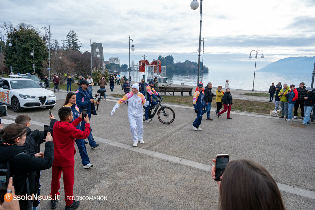 Non tutta La folla, però, s’è assiepata a bordo strada per festeggiare. All’arrivo in piazza Gramsci, ad esempio, tra tanti curiosi e i bambini della scuola materna della Rossa, c’era anche un gruppo di attivisti del presidio locale per la Palestina a scandire slogan, e ad esibire striscioni contro la partecipazione di Israele ai giochi invernali del mese prossimo. Ma, nel complesso, ha prevalso il clima di festa. Il corteo olimpico è stato accompagnato da applausi lungo tutto il percorso, al passaggio tra un tedoforo e l’altro nelle diverse tappe. Il corteo con la Fiaccola Olimpica è partito dal raccordo tra via Renco e Via De Notaris a Trobaso diretto a corso Mameli a Intra. Da qui ha raggiunto la rotonda in viale Azari diretta in piazza Gramsci. Davanti al Museo del Paesaggio il passaggio della Fiamma, poi la sosta davanti al Municipio e la tappa finale a Suna prima di toccare le due tappe conclusive: Baveno e Stresa, con tappa intermedia all’Isola Bella.