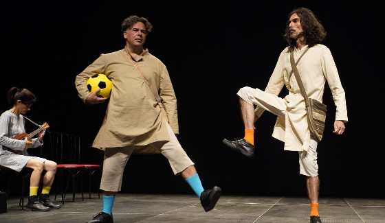 Un Pluto realizzato nella sua interezza, in una versione in cui tutti e quattro gli attori interpretano tutti i personaggi, proprio come nell’Atene di Aristofane. In scena Gabriele Carli, Giulia Gallo, Giovanni Guerrieri ed Enzo Illiano.
