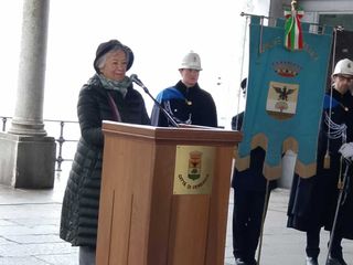 Prima del corteo fino alla targa commemorativa al parco Cavallotti è intervenuta Elena Giudice, fuggita da Pola all’età di 8 anni con tutta la famiglia: “Trasmetto le emozioni di una bimba di 8 anni, fuggimmo perché mio papà era stato inserito in una lista di persone destinate alla foiba. Ricordo l’ultimo giorno con i compagni di classe a scuola. Raccogliemmo una manciata di terra come ricordo, perché sapevamo che non saremmo tornati. Riuscimmo a partire con il secondo piroscafo. Siamo stati una famiglia fortunata, perché mia mamma aveva una sorella a Maddaloni disposta ad accoglierci. Ricordo le manifestazioni di simpatia che ci accolsero alla stazione di Padova. A Bologna fu molto diverso. A Firenze fummo accolti da una manifestazione di italianità. Arrivai a Maddaloni alle 10 di sera. Mi trovai male, parlavano una lingua che non capivo, la maestra a scuola aveva un bastone. Non frequentai la terza e la quarta elementare, mi preparavo a casa e sostenevo gli esami. Poi iniziammo a girare l’Italia perché mio padre era ferroviere e fu reinserito nelle ferrovie italiane, fino a Torino dove ci stabilimmo definitivamente. Io poi sono arrivata a Verbania per ragioni di lavoro di mio marito”. Oltre ai suoi ricordi personali, Elena Giudice ha raccontato l’esperienza di famiglia dai resoconti del diario che il fratello maggiore, allora 16enne, teneva regolarmente: “Fu picchiato da un partigiano titino perché, all’arrivo degli americani, sfilò col tricolore senza stella rossa, sfuggì all’arresto perché soccorso da un militare americano che lo caricò su un camion di passaggio. Finì lo stesso in prigione, ma mia madre riuscì a farlo rilasciare raccontando che fosse iscritto al patito comunista portando indumenti che ne attestavano l’appartenenza”.