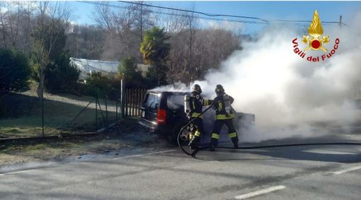 Intervento dei Vigili del fuoco del Comando provinciale del Verbano Cusio Ossola nel pomeriggio di oggi, intorno alle 15, sulla strada provinciale 34, in via per Carpugnino, nel territorio comunale di Brovello Carpugnino, a causa dell’incendio di un’autovettura. Sul posto è intervenuta una squadra supportata da un’autobotte provenienti dalla sede di Verbania. Le fiamme hanno completamente avvolto una Land Rover, che è andata distrutta nonostante il tempestivo intervento dei soccorritori.