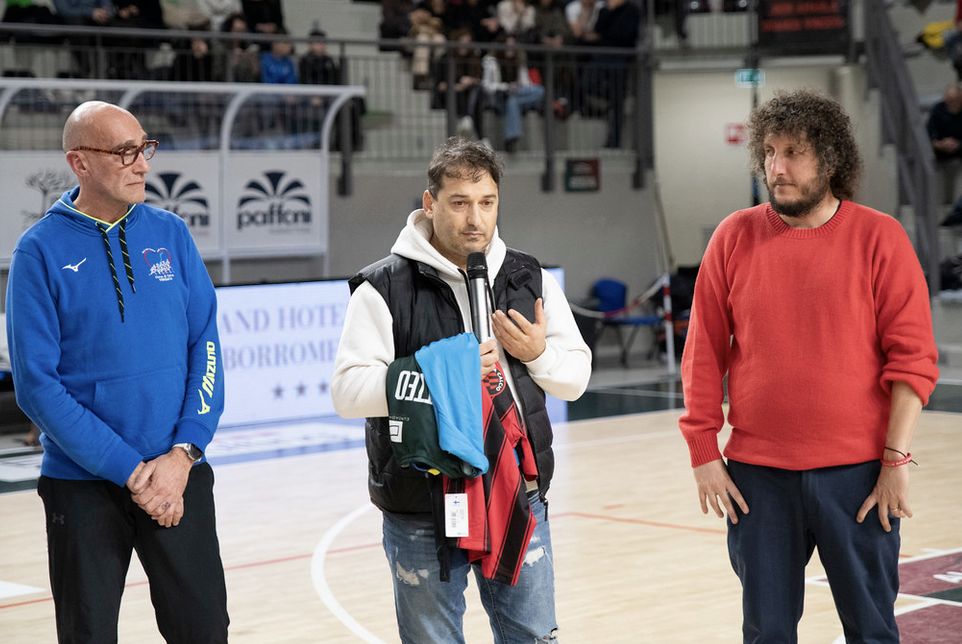 Fuori invece il contesto è stato uno spettacolo: palasport pieno, con una straordinaria presenza di tifosi ospiti. E le vibrazioni, l'affetto, l'abbraccio di tutti sono stati per il piccolo Matteo: al papà Giulio sono state donate le maglie di Paffoni, Elachem, Omegna Calcio e Corso di Corsa. E grazie all'iniziativa le partite del cuore, per lui arriveranno diecimila euro.