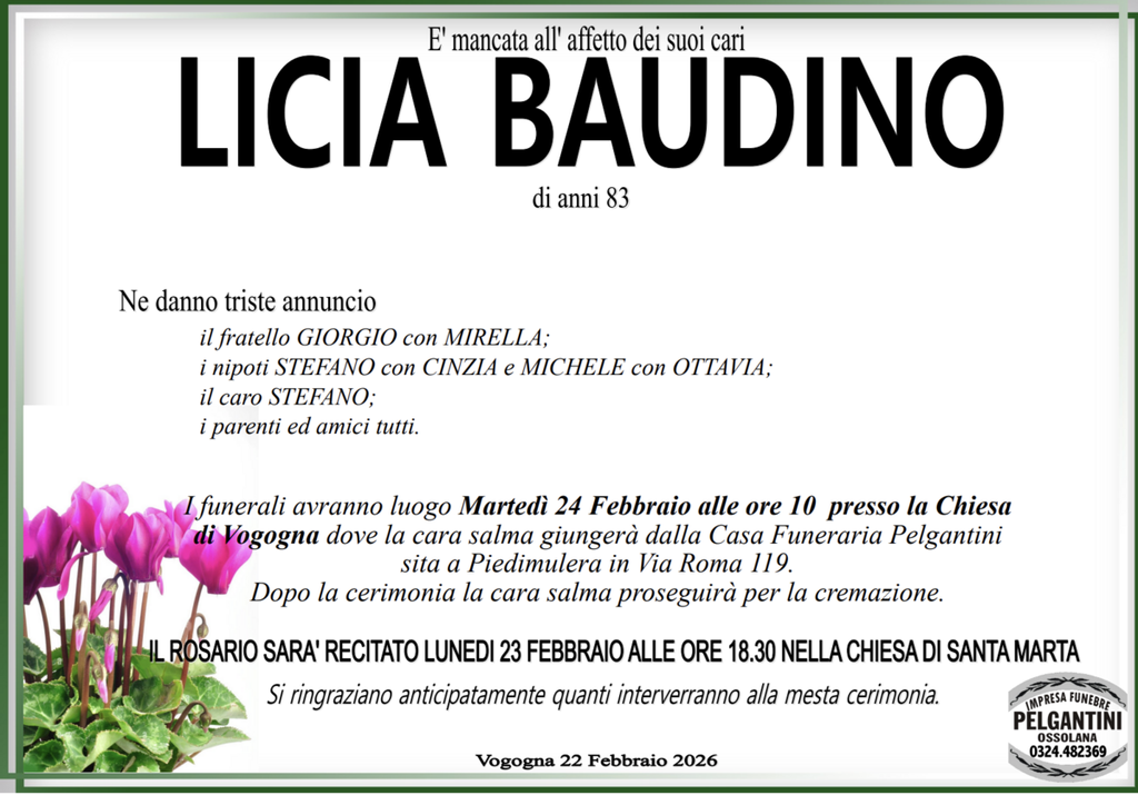 Maria Alba Brocca ved. Pellegrini di anni 71