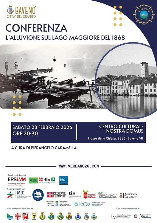 Nel quadro delle celebrazioni per i 200 anni di Navigazione sul Lago Maggiore, stasera, sabato 28 febbraio, si terrà a Baveno un appuntamento storico e culturale di grande rilievo: la conferenza “L’alluvione sul Lago Maggiore del 1868”, organizzata dall’Associazione Verbano 26 con il patrocinio della Città di Baveno, Assessorato alla Cultura.