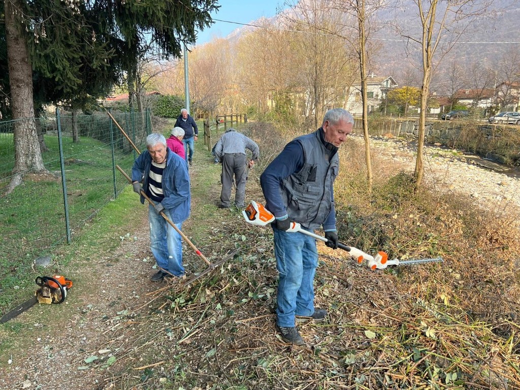 Forti di una squadra di circa una decina tra donne e uomini, i volontari si sono limitati ad un taglio profondo dei rovi, ma hanno tolto dal percorso quel che restava della “stagionata” barriera in legno, ossia pali e traversine mezzi marci. Ed ora, quando sarà installata una nuova? L'assessore Franco Gemelli, come sempre presente in loco per dare una mano, ha spiegato che serviranno alcune migliaia di euro per per sostituire la vecchia barriera in legno con una nuova in materiale riciclato, così come è già avvenuto nel primo tratto dalla Boschina al campo di calcio.