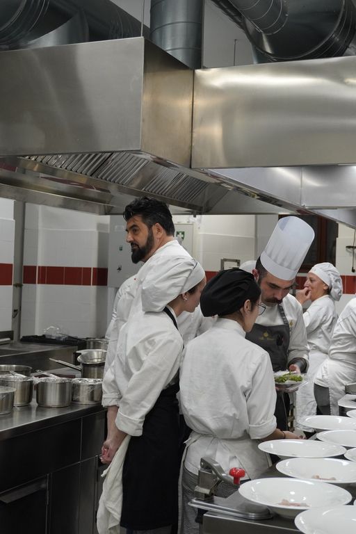 L’eduristorante Le Leve presso la storica sede del Campus Maggia (ex Collegio Rosmini) ha ospitato l’evento. In cucina c’erano anche alcuni membri della brigata di Villa Crespi e Gianni Bertone, allievo di Cannavacciuolo e anche lui chef stellato grazie alla stella ottenuta a Laqua by the Lake, il ristorante situato nel boutique hotel a Pettenasco.