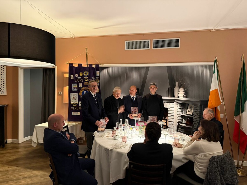 Nella serata di venerdì 6 marzo il ristorante Serenella di Baveno ha ospitato un incontro promosso dal dal presidente del Lions Club Verbano Borromeo, Fausto Macaluso. Nel corso della serata si è tenuta una riflessione, proposta da monsignor Maurizio Malvestiti - Gran Priore per l’Italia settentrionale dell’Ordine Equestre del Santo Sepolcro di Gerusalemme, già sottosegretario del dicastero delle chiese orientali - sul tema “Gerusalemme, Israele e Palestina: l’irrinunciabile pace per il mondo tra conflitti e speranze”. Presenti anche Francesco Maria Galli e don Fabrizio Coppola dell’Ordine Equestre.