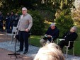 “È un grande onore avere una targa – ha esordito l’artista -, già quand’ero bambino, quando venivo in gita coi genitori alle isole Borromee, Villa Taranto era un’eccellenza”. Per ringraziare, Nespolo ha scritto un saggio che la direzione dell’ente ha fatto stampare in un volumetto distribuito ad autorità ed invitati. “La natura – ha anticipato – ispira l’arte. L’opera d’arte è stata messa in crisi dalla modernità. Tutto è diventato opera d’arte, tutti sono artisti, il mistico è diventato forma, l’arte non sa più dove andare. L’anno scorso durante l’allestimento della mostra, ho avuto modo di tornare a Villa Taranto: è stata una passeggiata trascendentale, sono stati affascinato dal vostro parco. È la natura la vera ispiratrice l’arte”.