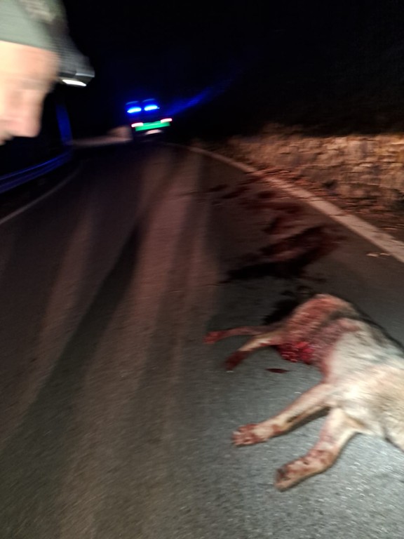 Il ritrovamento è avvenuto lungo la strada provinciale per San Domenico. Secondo quanto ricostruito, l’animale, nel tentativo di superare una recinzione in ferro che delimita una proprietà privata, si sarebbe procurato una grave ferita al basso ventre. La lesione ha provocato la fuoriuscita delle viscere e, dopo aver percorso alcune decine di metri, il lupo è crollato al suolo, dove è stato successivamente recuperato dagli agenti.