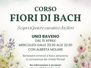 Ultima chiamata per chi desidera partecipare al corso Uni3 “Fiori di Bach”, in partenza mercoledì 15 aprile presso la Biblioteca Civica di Baveno in Piazza della Chiesa 8. Il corso, condotto da Alberta Molare, si propone come un’introduzione pratica ai rimedi floreali ideati dal Dr. Edward Bach, pensata per chi vuole prendersi cura delle proprie emozioni in modo naturale.
