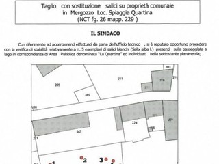 Il Comune di Mergozzo ha emesso l’ordinanza con cui dispone l’abbattimento di quattro esemplari di salice bianco situati in località Spiaggia Quartina, lungo la passeggiata a lago nell’area pubblica denominata “La Quartina”.