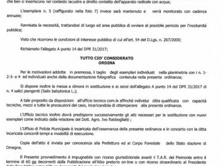 L’ordinanza prevede inoltre la sostituzione degli alberi abbattuti con la messa a dimora di quattro nuovi salici, con l’obiettivo di preservare il valore paesaggistico e ambientale della zona, oltre che garantire la sicurezza dei frequentatori dell’area.