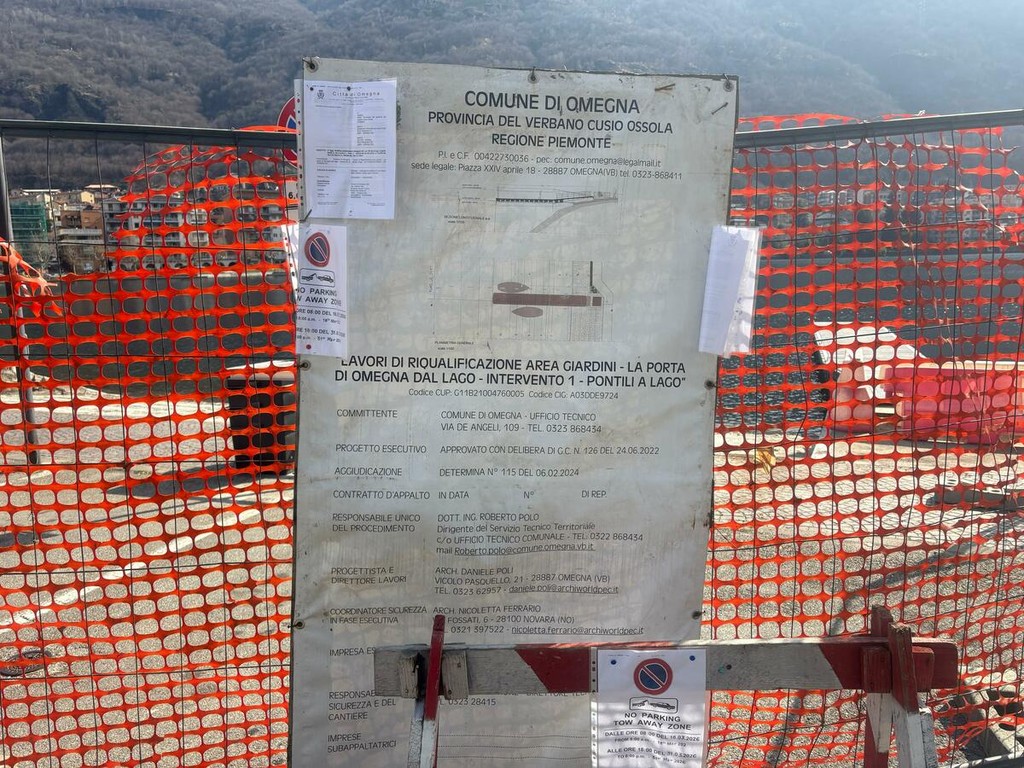 Dopo i ritardi dovuti alla presenza nelle acque del lago di fronte ai giardini, nella parte finale, verso Bagnella, di vecchi ordigni bellici quali mine, bombe a mano e proiettili di mortaio, con conseguente intervento per una completa bonifica da parte della Marina, è stato posato il pontile lungo sedici metri. La nuova struttura ha otto posti barca ed è destinata alla sosta temporanea, per i privati che raggiungono Omegna.