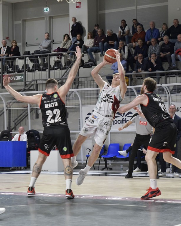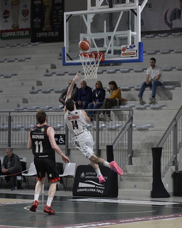 Nel secondo periodo cambia l’inerzia. Le percentuali di Omegna si abbassano e Vicenza ne approfitta con Pisano e Marangoni protagonisti. Gli ospiti ricuciono lo strappo e trovano anche il sorpasso con cinque punti consecutivi di Preti. A rimettere ordine ci pensano Brekic e Baldini, mentre una giocata di grande classe di Sacchettini manda le squadre all’intervallo sul 40-35.
