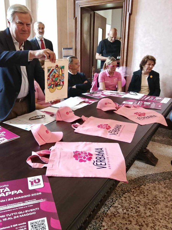 Una città tinta di rosa per 10 giorni, dal 15 al 24 maggio, due giorni dopo l’arrivo di tappa del Giro d’Italia sul lungolago di Pallanza. “Non limitata all’evento sportivo ma un palcoscenico diffuso”, promette il sindaco di Verbania Giandomenico Albertella presentando il programma che scandirà giorno per giorno l’avvicinamento all’evento sportivo. Un programma in parte ancora in fase d’allestimento. “Non abbiamo ancora fatto in tempo ad inserire, ad esempio, - prosegue il sindaco – la benedizione delle biciclette il 9 maggio alle 11.30 in piazza San Vittore e l’apertura alle 12.00 dello stand gastronomico dei Pacian”.