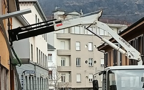 Camion urta e abbatte un palo della luce in via Tito Speri a Omegna FOTO E VIDEO